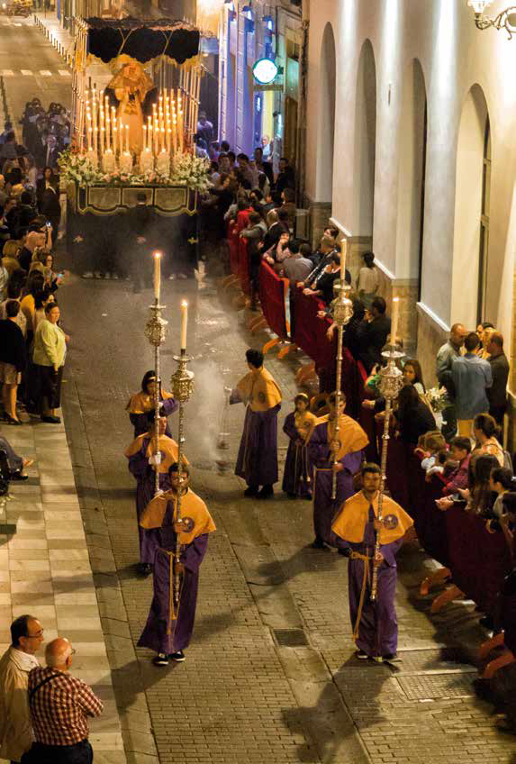 Salida de parroquia de la Anunciación para continuar por Plaza de la Constitución, Carrera de Granada, c/ Gabriel Miro, c/ San Quintín, Placetilla de San Pedro, c/ San Quitín, Placetilla de las Monjas, c/ Mártires de La Alpujarra, c/ Buena Fe, c/ Agua, entrada centro Paseo de Cervantes, c/ Carolinas, c/ San Tesifon, Avda. Manuel Salmerón, carrera oficial, c/ Agua, c/ Puente Lozas, Plaza de la Constitución, y llegada a parroquia de la Anunciación.